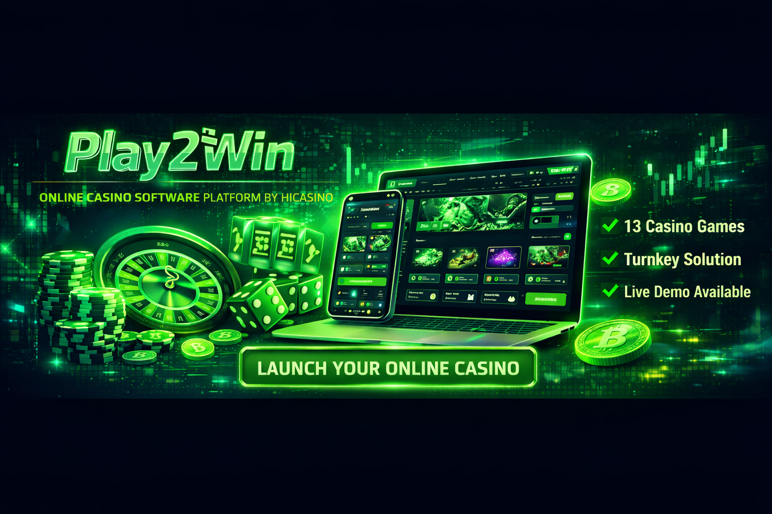 Play2Win is a professional online casino software platform designed for B2B use. It enables operators to run a complete casino business using a single, unified system that includes multiple popular games, player management tools, and a scalable backend infrastructure.
